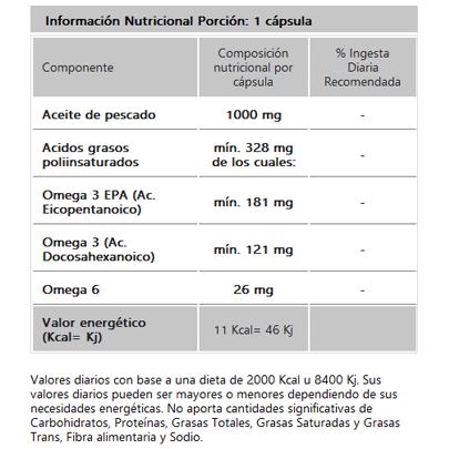Cada comprimido contiene: Aceite de Pescado (1000mg)(*)