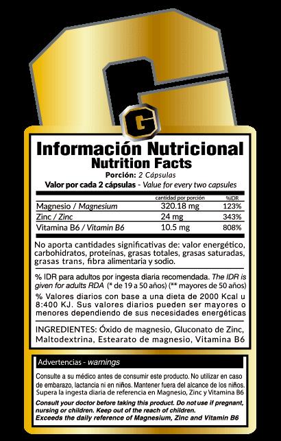El ZMA GOLD NUTRITION es una fórmula de suplementación nutricional compuesta esencialmente por Zinc, Magnesio y vitamina B6 en las formas de máxima BIODISPONIBILIDAD.