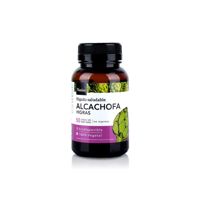 La alcachofa es una de las fuentes vegetales más ricas en calcio, hierro, magnesio y potasio. También contiene fibra y cinarina, un compuesto que ha sido estudiado por estimular el funcionamiento del hígado. Este compuesto de sabor amargo que se encuentra en las hojas, mejora la función del hígado y de la vesícula biliar, estimula la secreción de jugos gástricos y disminuye los niveles de colesterol en sangre. A nivel digestivo la alcachofa contiene mucha fibra que ayuda a combatir el estreñimiento. Como complemento en dietas de adelgazamiento ayuda a evitar la retención de líquidos y eliminar grasa a través de la billis. Natier utiliza para su formulación 100% extracto concentrado de alcachofa con el objetivo de lograr mayor potencia en los beneficios y propiedades nutricionales, superando exigentes controles de calidad.​