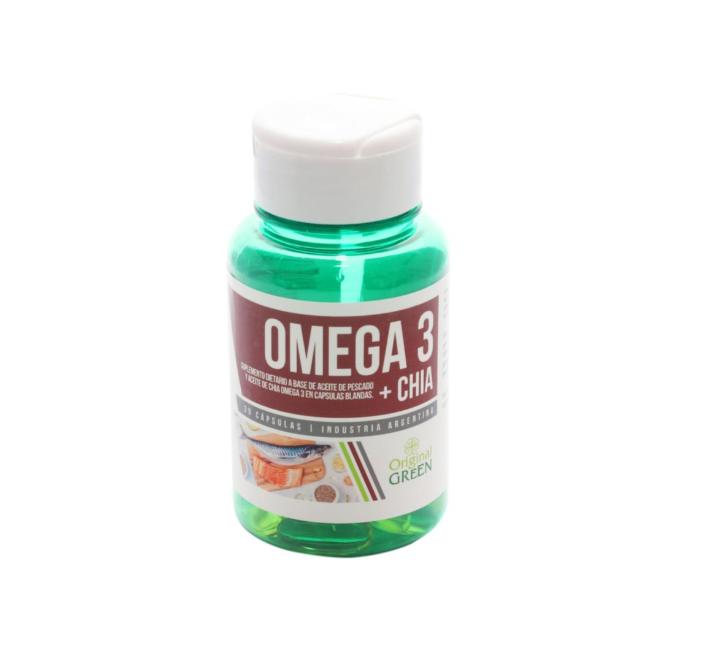 Ingredientes: Por cápsula: Aceite de pescado 250mg, Aceite de Chía 750 mg, Vitamina E 0.5 mg.