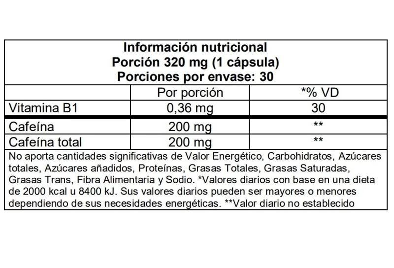 La cafeína desencadena una gama de beneficios específicos de la performance que incluyen un mejor enfoque, un estado de alerta elevado, un tiempo de reacción más rápido, una fatiga reducida, una mayor resistencia y un estado de ánimo elevado. Además respalda un metabolismo saludable para la quema eficiente de calorías.